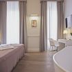 The recently renovated rooms are furnished in a contemporary way, harmonizing the classic nature of the building with the frescoed ceilings of the 18th century.